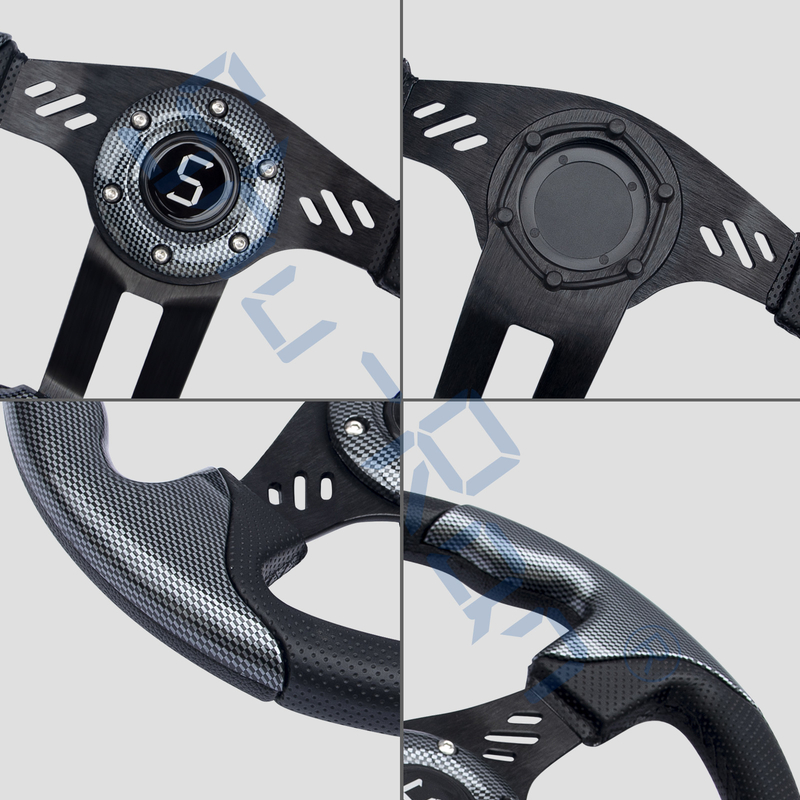 Roda kemudi aviator mudah dipasang pada Club Car Precedent, DS, EZGO TXT, RXV, dan kereta golf Yamaha dengan adaptor (diperlukan dan dijual terpisah). Diameter roda kemudi adalah 13 inci. Silakan pilih merek dan warna kereta tertentu dari halaman lain agar sesuai dengan kereta golf Anda. Layanan kustomisasi logo tengah tersedia (File diperlukan).